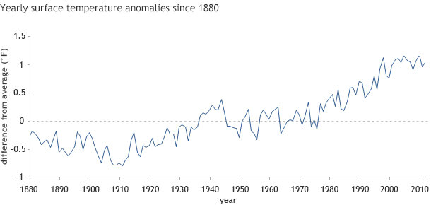 - Burning of fossil fuels has increased Earth’s temperature by 1.0oC since 1900 (see graphs below). The small temperature shift, an important factor in Earth’s system, has dramatic consequences that lead to ocean warming and the climate changes we are witnessing.